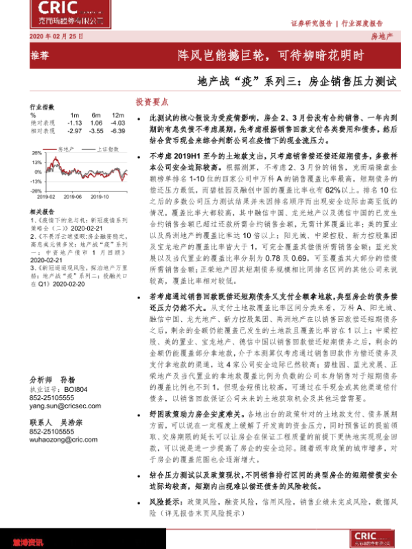 【克而瑞证券】【20200225】地产战“疫”系列三:房企销售压力测试-11页