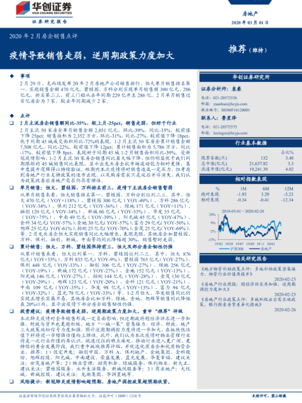 【华创证券】【20200301】2020年2月房企销售点评-11页
