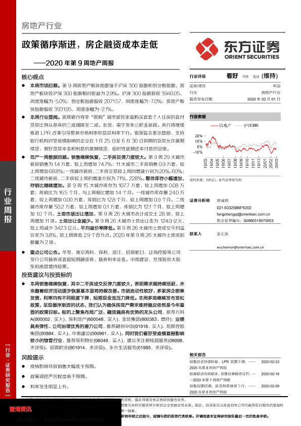 【东方证券】【20200301】2020年第9周地产周报:政策循序渐进,房企融资成本走低-17页