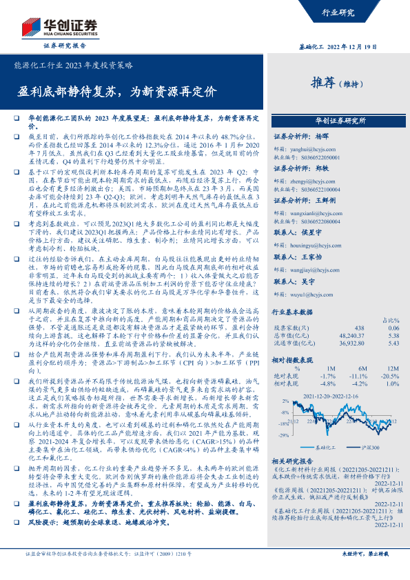 【华创证券】【20221219】能源化工行业2023年度投资策略:盈利底部静待复苏,为新资源再定价-69页