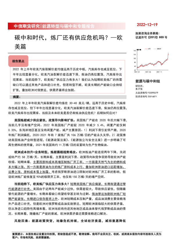 【中信期货】【20221219】能源转型与碳中和专题报告欧美篇:碳中和时代,炼厂还有供应危机吗?-15页
