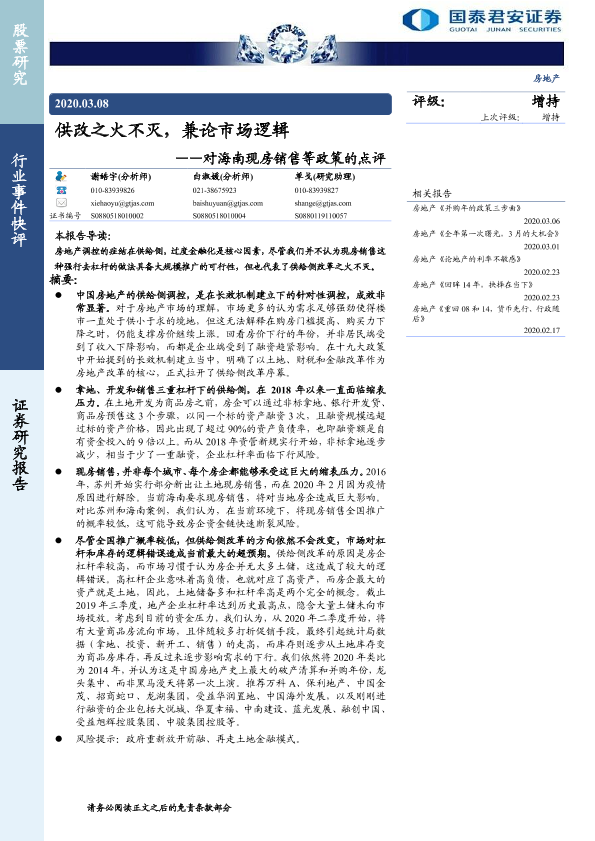 【国泰君安证券】【20200308】对海南现房销售等政策的点评:供改之火不灭,兼论市场逻辑-3页
