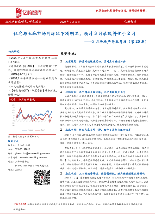 【亿翰智库】【20200306】2月房地产行业月报:住宅与土地市场同环比下滑明显,预计3月表现将优于2月-25页