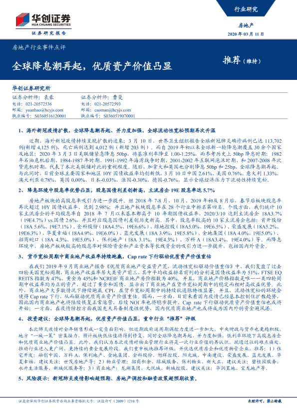 【华创证券】【20200311】全球降息潮再起,优质资产价值凸显-11页