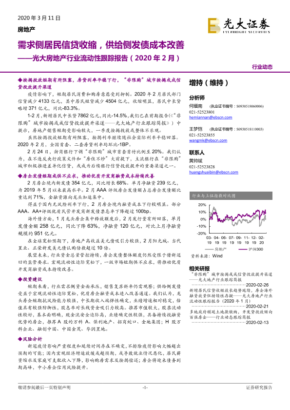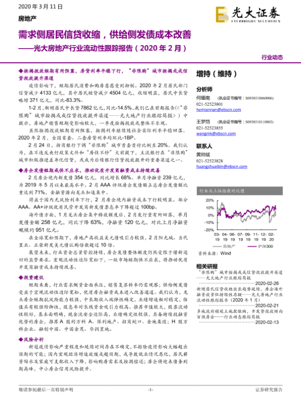 【光大证券】【20200311】光大房地产行业流动性跟踪报告(2020年2月):需求侧居民信贷收缩,供给侧发债成本改善-11页