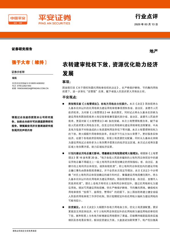 【平安证券】【20200313】地产行业点评:农转建审批权下放,资源优化助力经济发展-3页