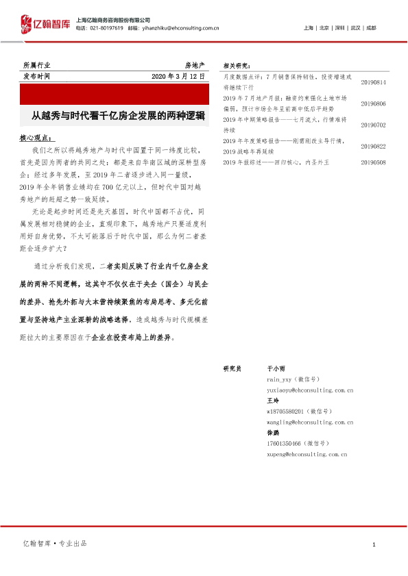 【亿翰智库】【20200312】从越秀与时代看千亿房企发展的两种逻辑-10页