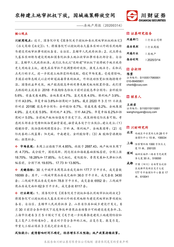 【川财证券】【20200314】农转建土地审批权下放,因城施策释放空间-14页