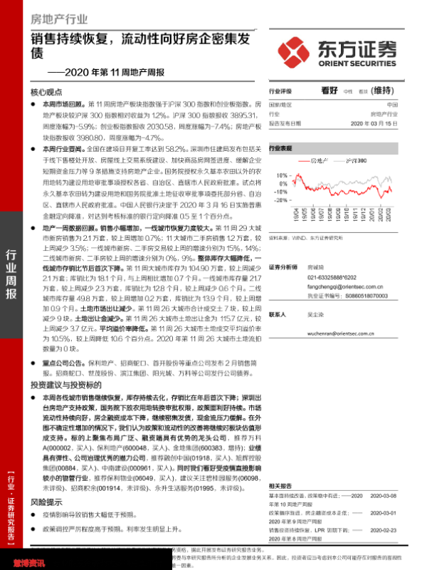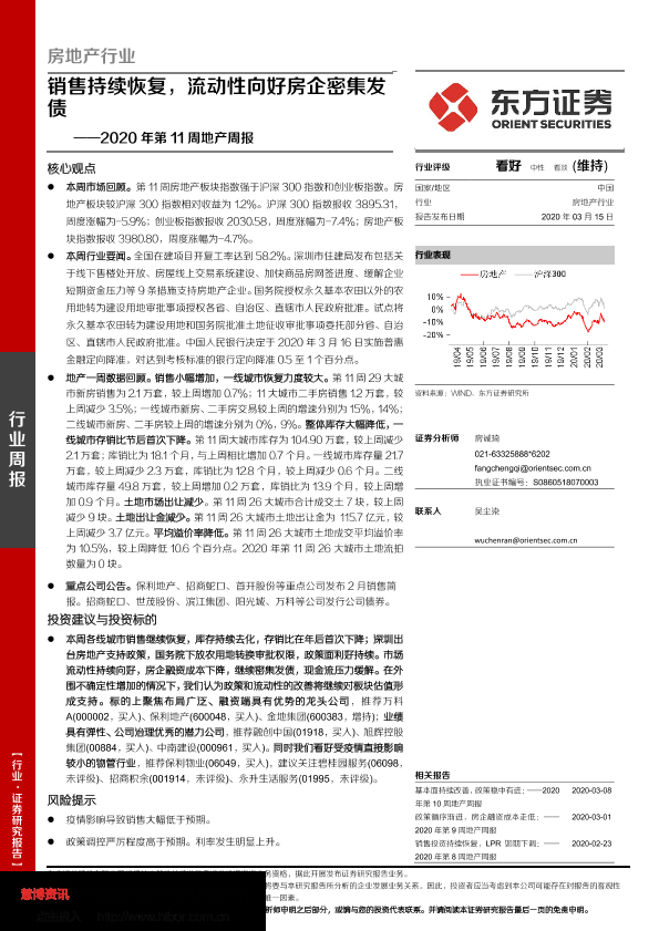 【东方证券】【20200315】2020年第11周地产周报:销售持续恢复,流动性向好房企密集发债-17页