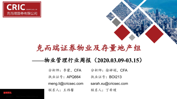 【克而瑞证券】【20200315】物业管理行业周报-15页