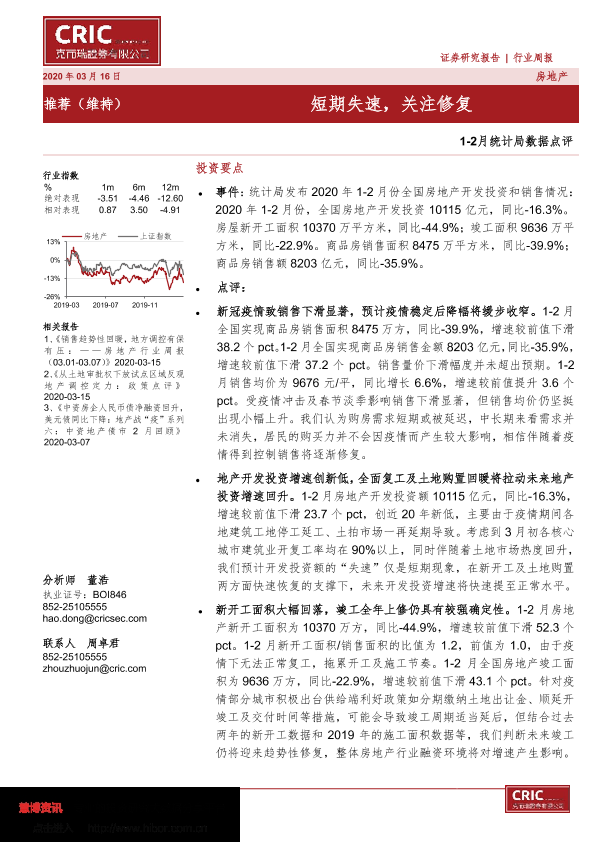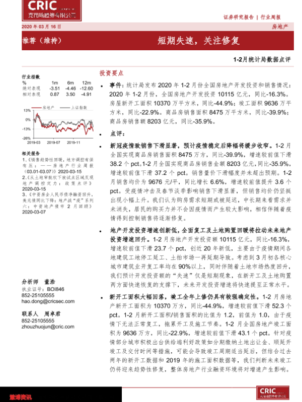 【克而瑞证券】【20200316】1-2月统计局数据点评:短期失速,关注修复-5页