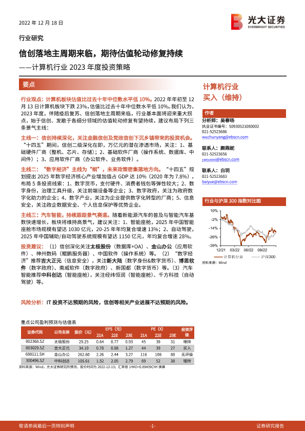 【光大证券】【20221218】计算机行业2023年度投资策略:信创落地主周期来临,期待估值轮动修复持续-54页