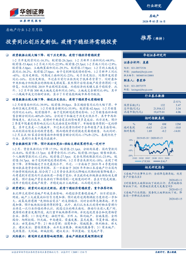 【华创证券】【20200316】房地产行业1-2月月报:投资同比创历史新低,疫情下稳经济需稳投资-11页