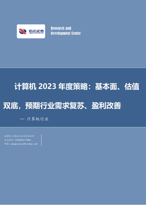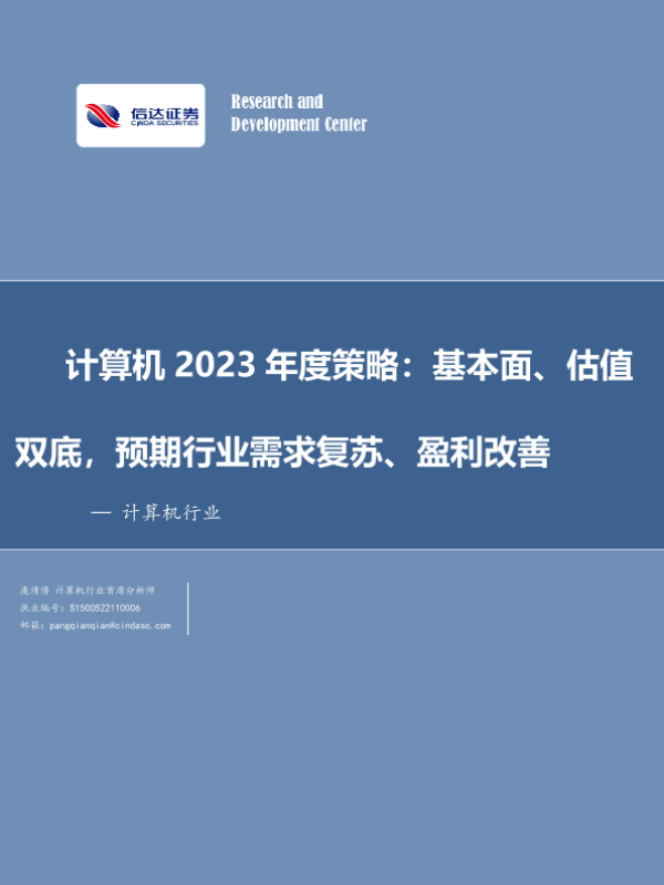 【信达证券】【20221216】计算机 2023年度策略:基本面、估值双底,预期行业需求复苏、盈利改善-103页