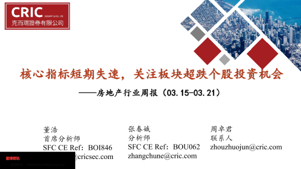 【克而瑞证券】【20200321】核心指标短期失速,关注板块超跌个股投资机会-27页