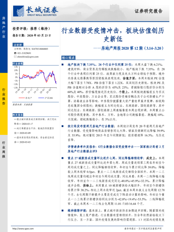 【长城证券】【20200323】行业数据受疫情冲击,板块估值创历史新低-17页