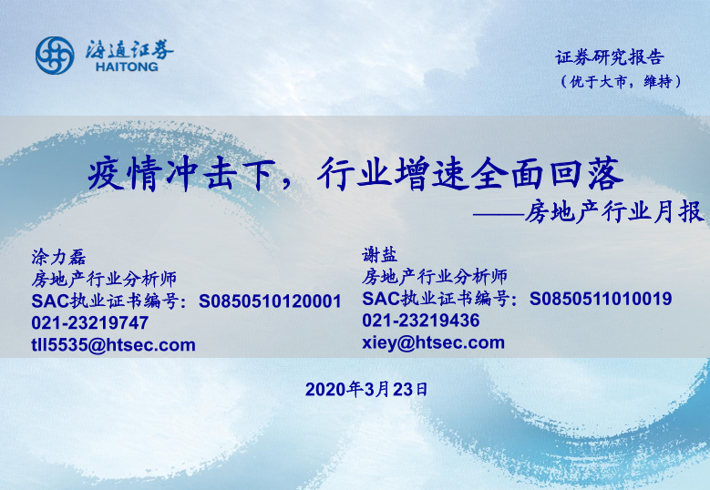 【海通证券】【20200323】疫情冲击下,行业增速全面回落-18页