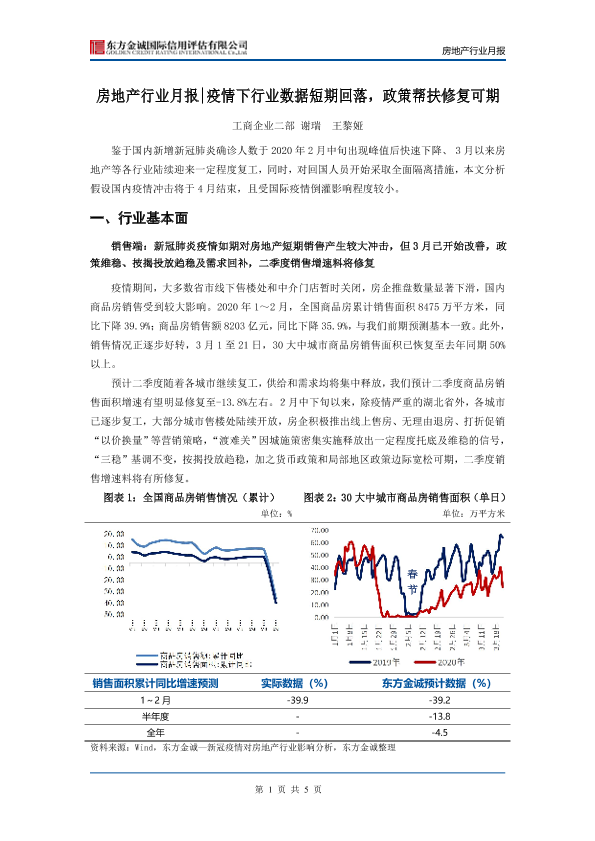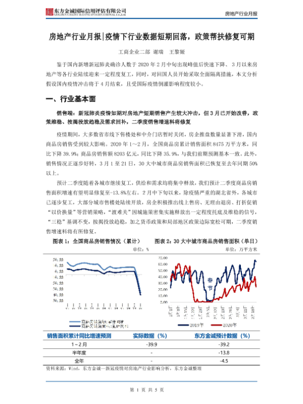 【东方金诚】【20200325】疫情下行业数据短期回落,政策帮扶修复可期-5页