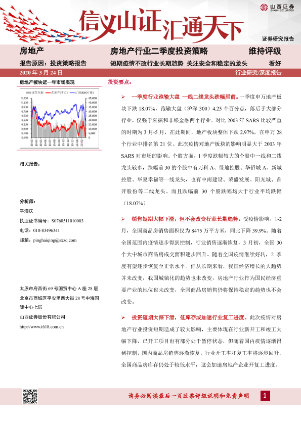 【山西证券】【20200324】房地产行业二季度投资策略:短期疫情不改行业长期趋势 关注安全和稳定的龙头-16页