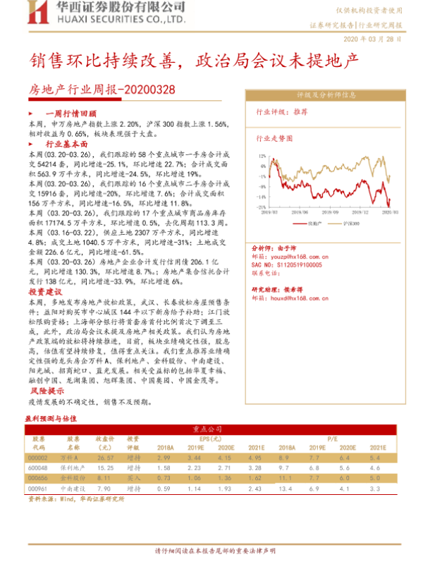 【华西证券】【20200328】销售环比持续改善,政治局会议未提地产-22页