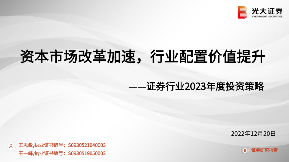 【光大证券】【20221220】证券行业2023年年度投资策略:资本市场改革加速,行业配置价值提升-27页