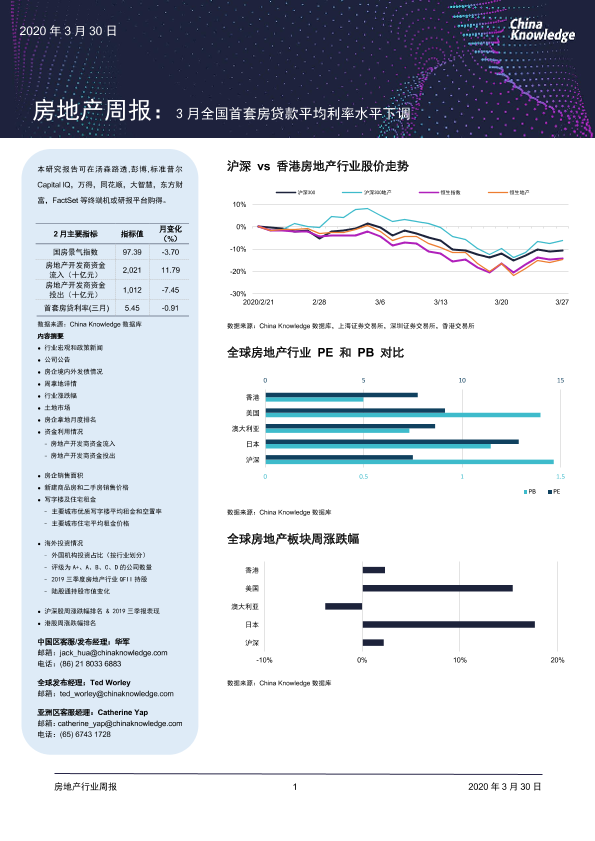 【China Knowledge】【20200330】房地产周报:3月全国首套房贷款平均利率水平下调-21页