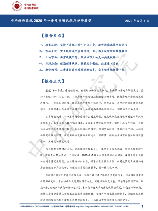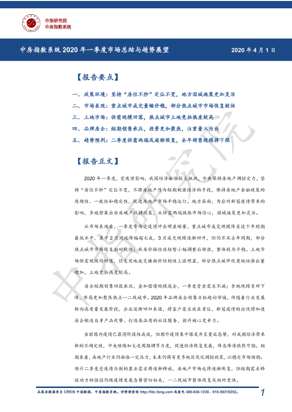 【中指研究院】【20200401】2020年一季度市场总结与趋势展望-12页