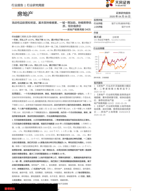 【天风证券】【20200405】天风证券-房地产销售周报:流动性边际宽松明显、基本面持续修复、一城一策加码、持续推荐优质、低估值房企-12页