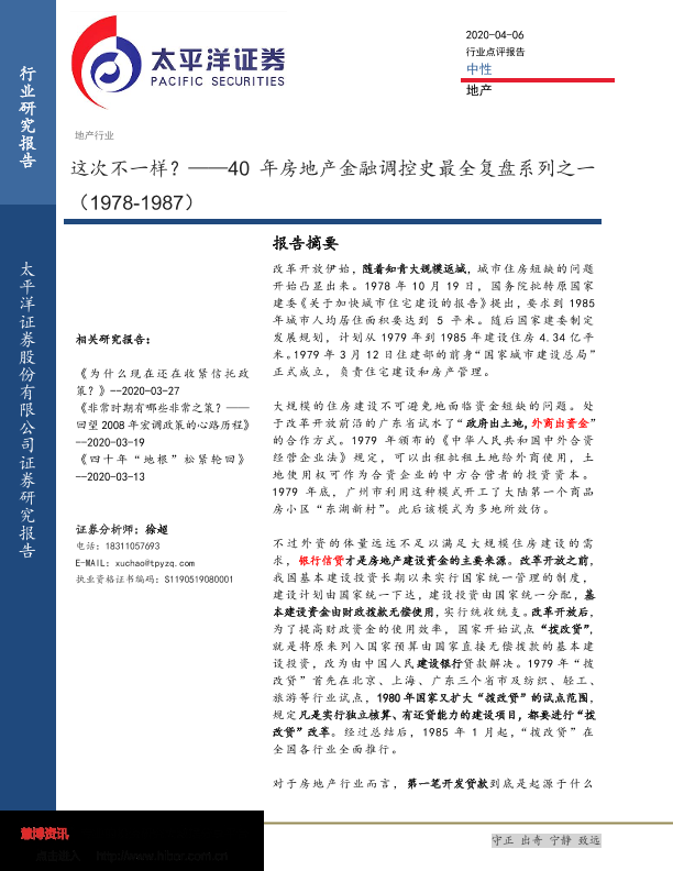 【太平洋证券】【20200406】40年房地产金融调控史最全复盘系列之一:这次不一样?-7页