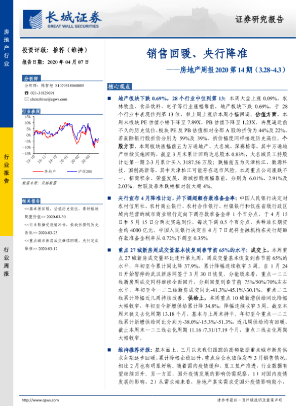 【长城证券】【20200407】销售回暖、央行降准-16页