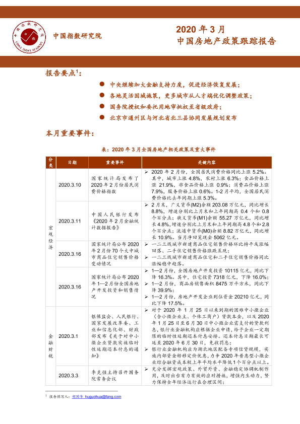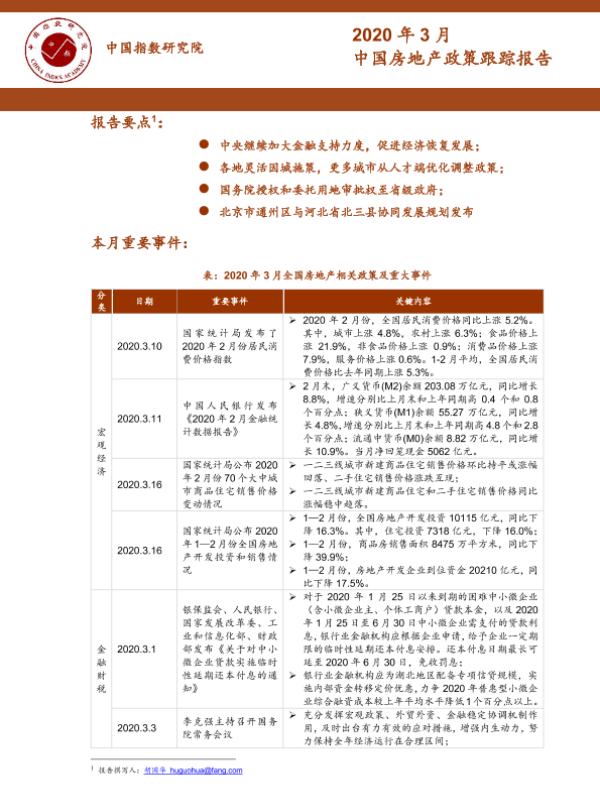 【中指研究院】【20200407】2020年3月中国房地产政策跟踪报告-22页