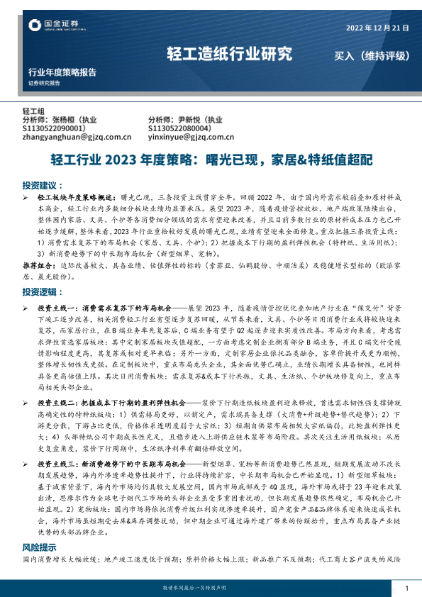 【国金证券】【20221221】轻工行业2023年度策略:曙光已现,家居&特纸值超配-37页