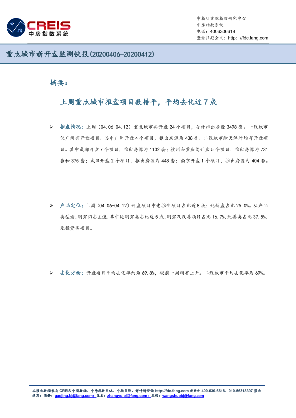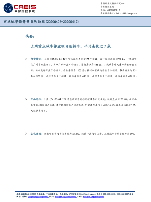【中指研究院】【20200412】重点城市新开盘监测快报-4页