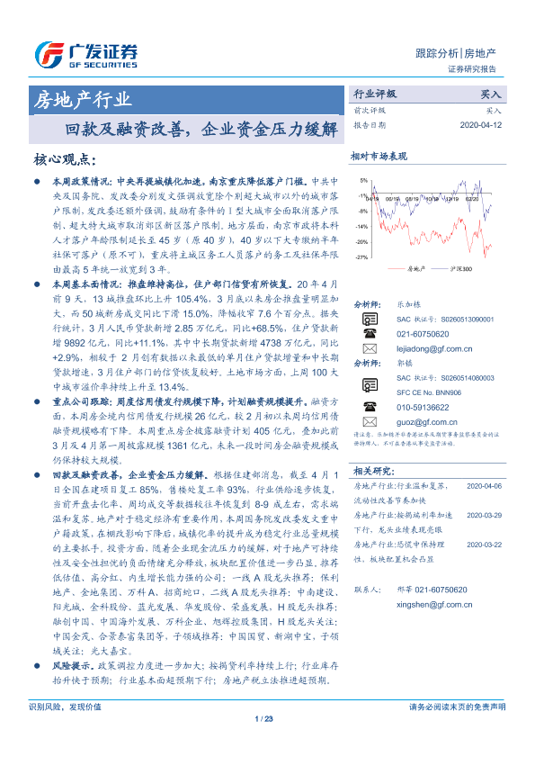 【广发证券】【20200412】房地产行业:回款及融资改善,企业资金压力缓解-23页