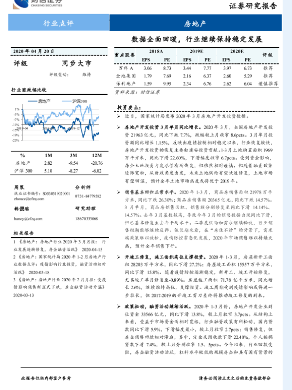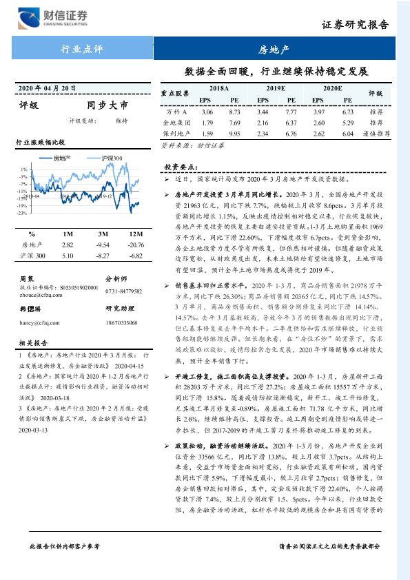【财信证券】【20200420】房地产行业点评:数据全面回暖,行业继续保持稳定发展-3页