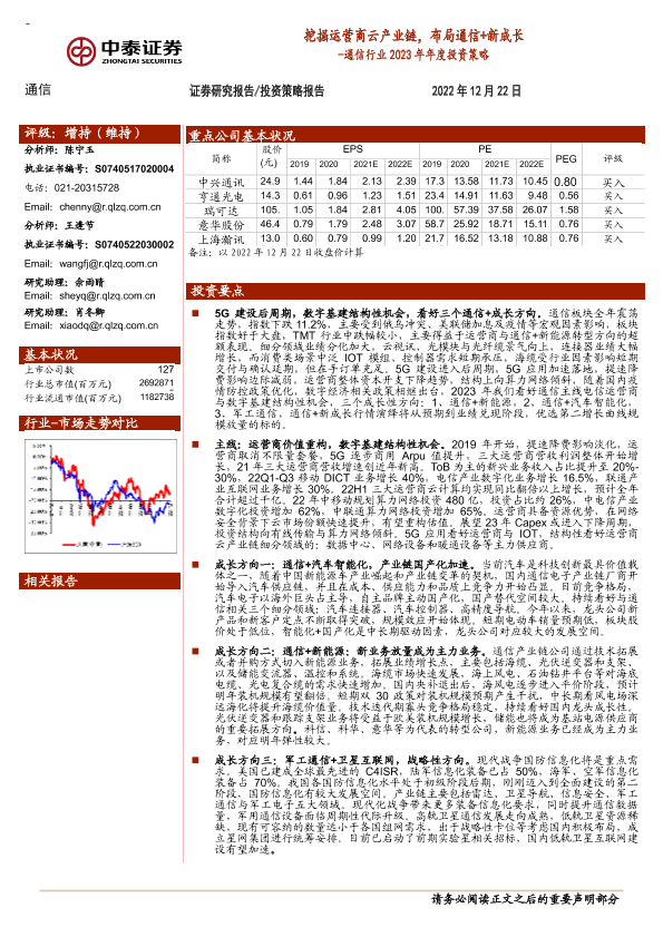 【中泰证券】【20221222】通信行业2023年年度投资策略:挖掘运营商云产业链,布局通信+新成长-62页