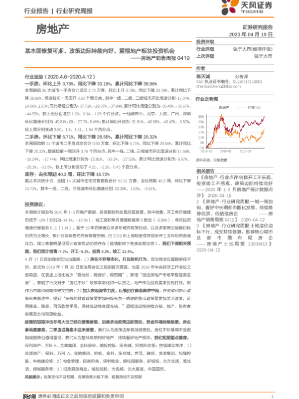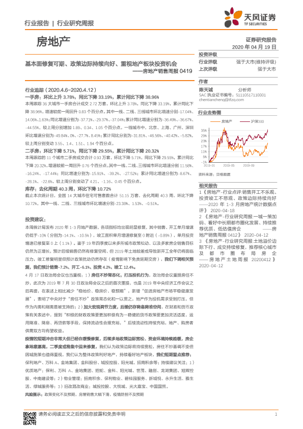 【天风证券】【20200419】基本面修复可期、政策边际持续向好、重视地产板块投资机会-13页