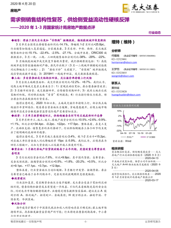 【光大证券】【20200420】房地产2020年1-3月国家统计局房地产数据点评-12页