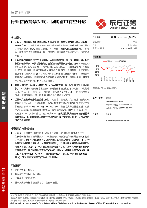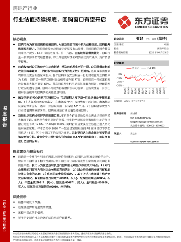 【东方证券】【20200423】房地产行业深度报告:行业估值持续探底,回购窗口有望开启-18页