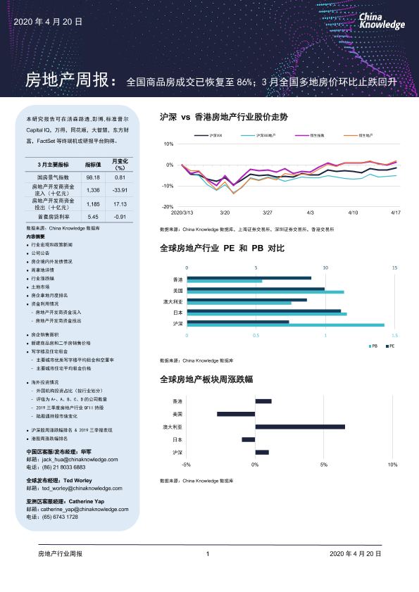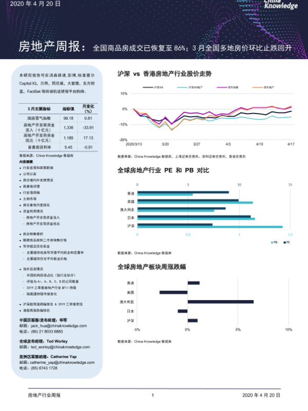 【China Knowledge】【20200420】房地产周报:全国商品房成交已恢复至86%;3月全国多地房价环比止跌回升-21页