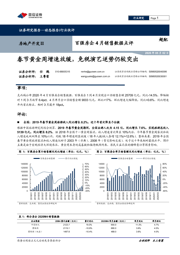 【国信证券】【20200502】百强房企4月销售数据点评:春节黄金周增速放缓,免税演艺逆势仍较突出-6页