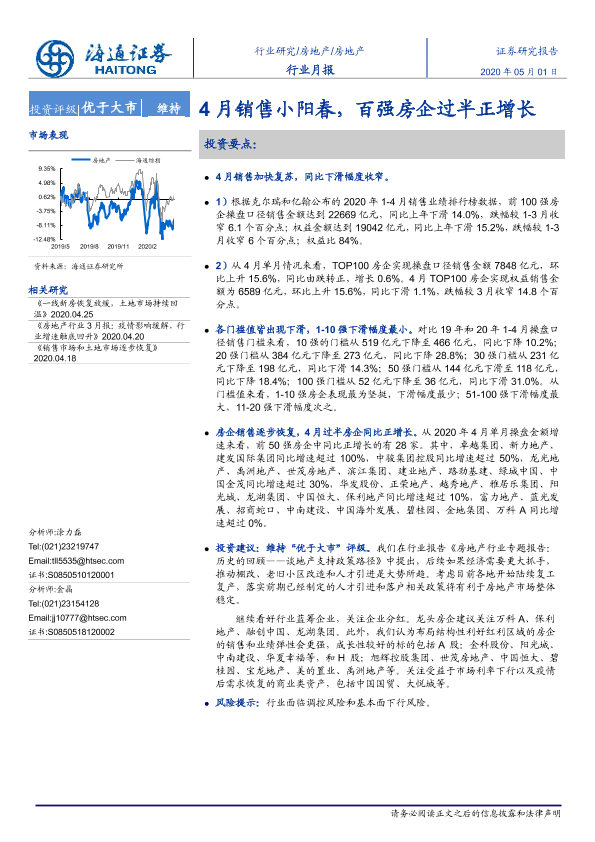 【海通证券】【20200501】4月销售小阳春,百强房企过半正增长-9页