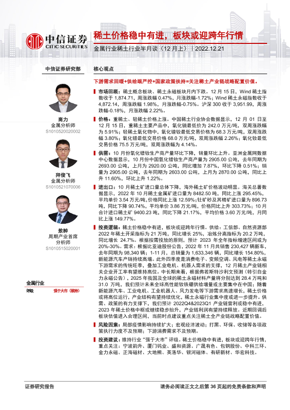 【中信证券】【20221221】金属行业稀土行业半月谈(12月上):稀土价格稳中有进,板块或迎跨年行情-37页
