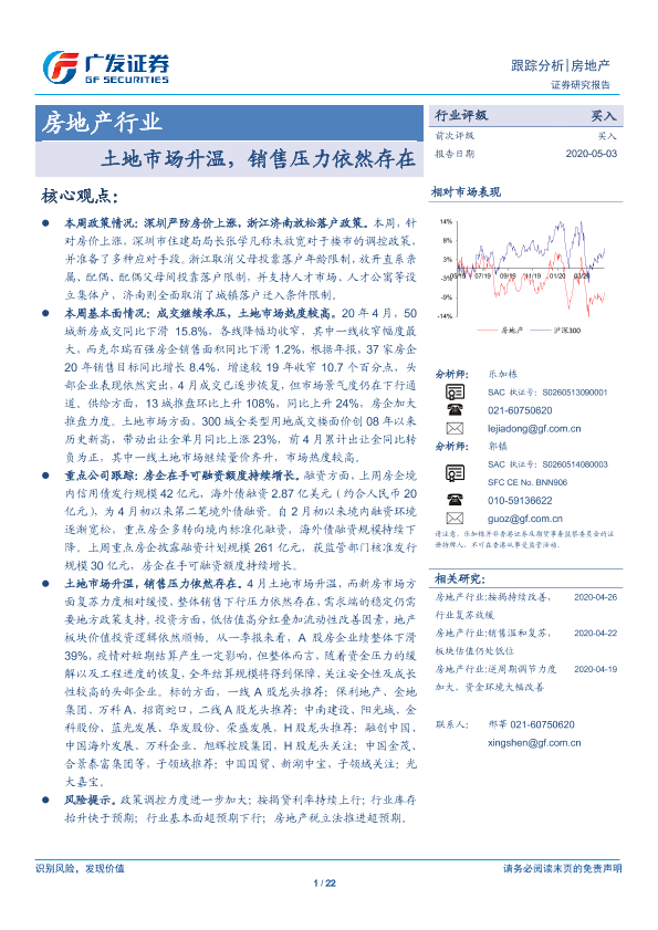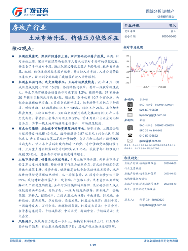 【广发证券】【20200503】房地产行业跟踪分析:土地市场升温,销售压力依然存在-22页