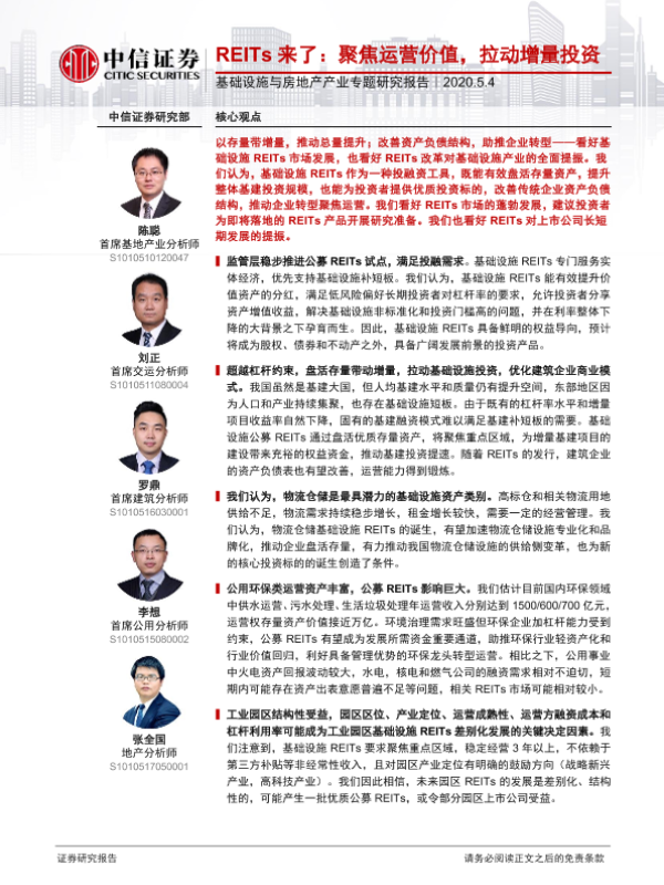 【中信证券】【20200504】REITs来了:聚焦运营价值,拉动增量投资-39页
