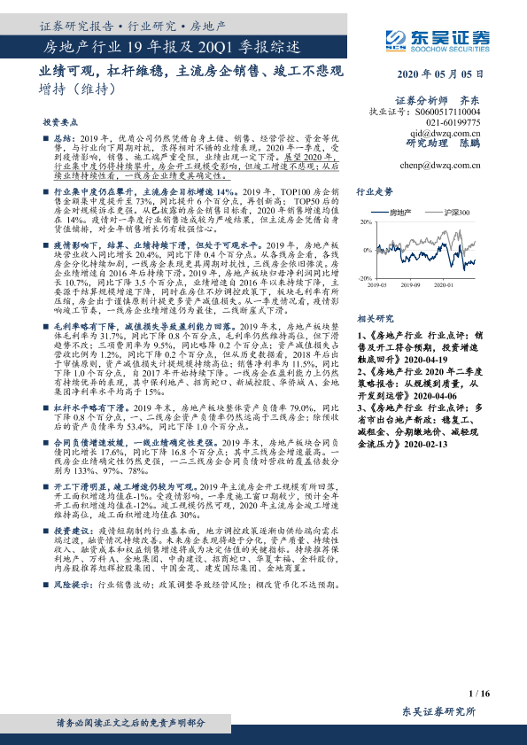 【东吴证券】【20200505】房地产行业19年报及20Q1季报综述-16页