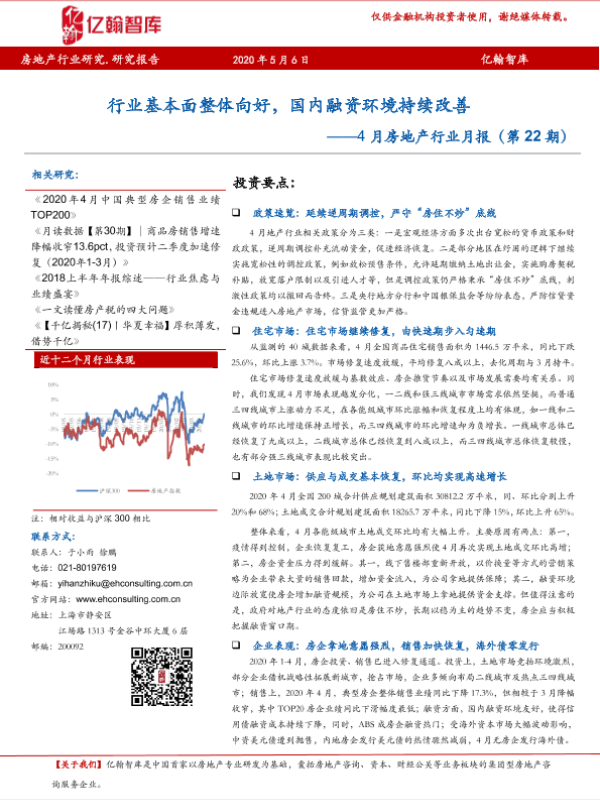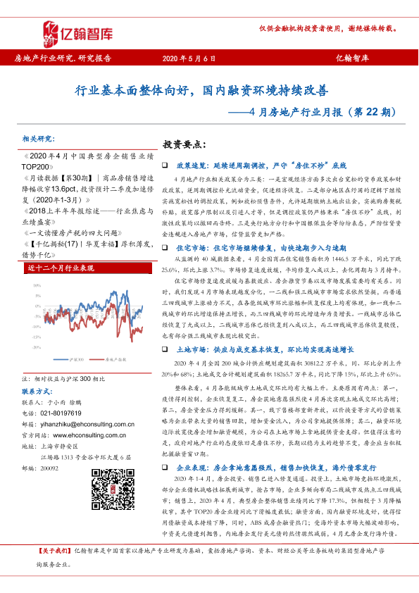 【亿翰智库】【20200506】4月房地产行业月报:行业基本面整体向好,国内融资环境持续改善-24页
