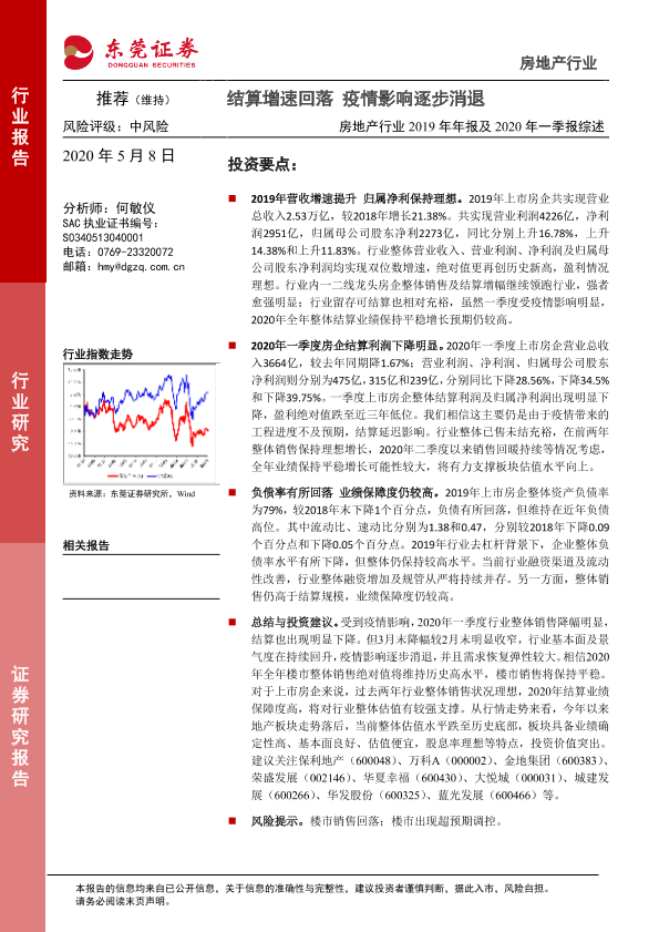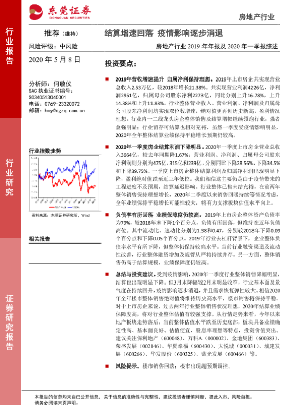 【东莞证券】【20200508】房地产行业2019年年报及2020年一季报综述:结算增速回落 疫情影响逐步消退-12页