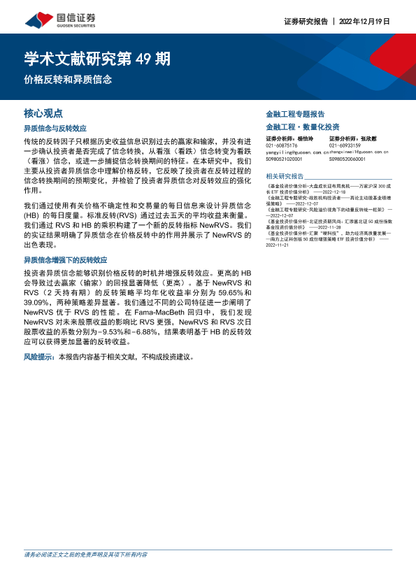 【国信证券】【20221219】金融工程专题报告:学术文献研究第49期,价格反转和异质信念-20页