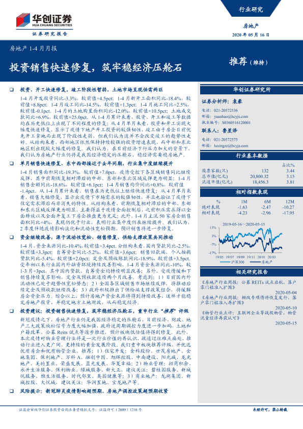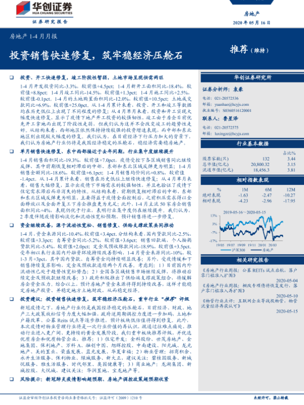 【华创证券】【20200516】房地产1-4月月报:投资销售快速修复,筑牢稳经济压舱石-12页